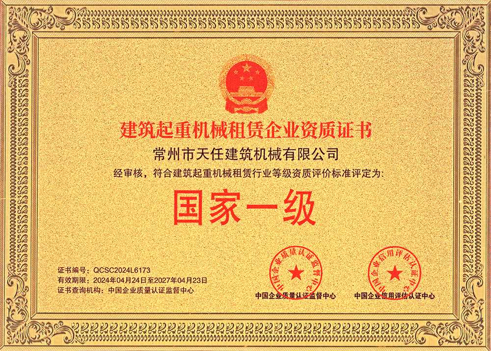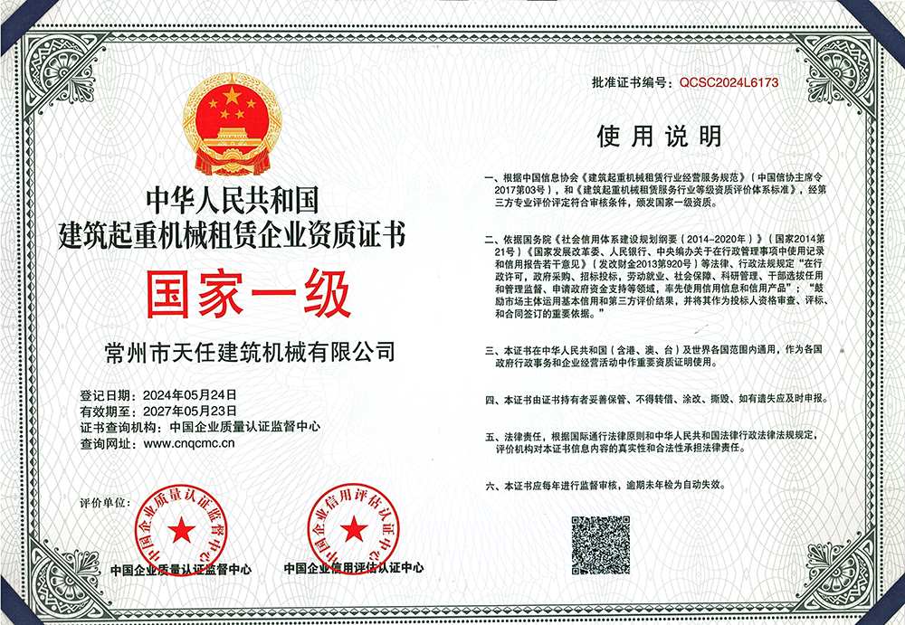 建筑起重機械租賃企業資質證書